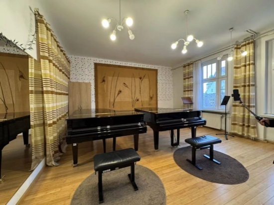 抵达酒店办理入住后,在往届学长的带领下,大家第一时间参观了波兹南音乐学院,提前熟悉了接下来几天将要使用的上课琴房与日常练琴房间。值得一提的是,学员们还有幸见到了波波娃教授的授课教室,近距离感受顶尖音乐学府的学习氛围。