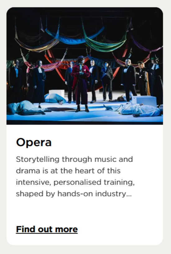 如今的 RWCMD 早已成为 “优质表演艺术中心”,在音乐、表演、舞台管理、剧场技术、舞台设计、艺术管理、音乐疗法七大领域尤为突出。更赞的是,学院常年和专业机构、知名导演、表演中介合作,学生在校就能积累实战经验,提前搭建行业人脉!