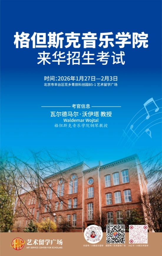 为方便中国学子奔赴古典音乐梦想,格但斯克音乐学院特在中国开设招生考试通道,核心信息如下: