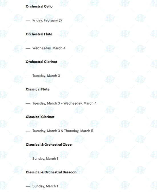 发布时间:2025-12-30 11:10 来源:艺术留学广场 关键词:曼哈顿音乐学院,艺术留学广场,艺术留学,美国音乐学院近期,不少同学陆续收到了美国曼哈顿音乐学院的复试通知。昨天我们已经和大家分享了线上面试与线下面试的利弊,接下来,就为大家详细整理曼哈顿音乐学院各专业 2026 年试镜时间。
