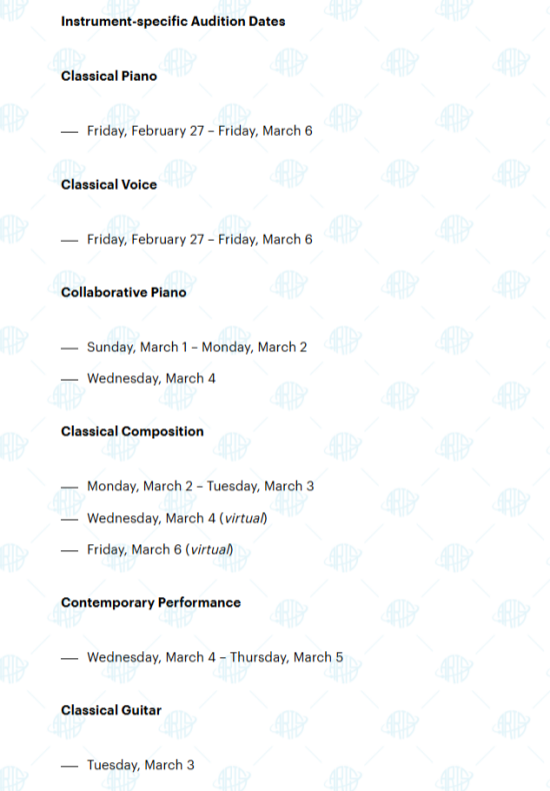 曼哈顿音乐学院 2026 各专业试镜时间速查