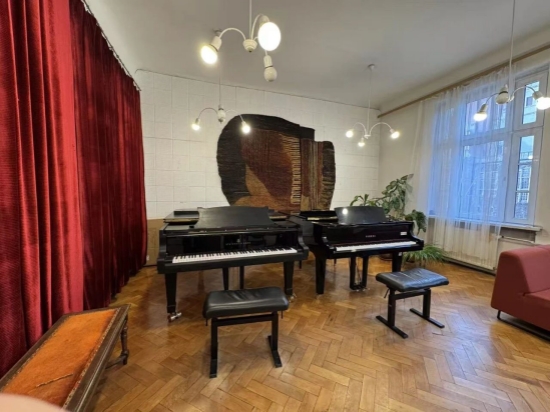 抵达酒店办理入住后,在往届学长的带领下,大家第一时间参观了波兹南音乐学院,提前熟悉了接下来几天将要使用的上课琴房与日常练琴房间。值得一提的是,学员们还有幸见到了波波娃教授的授课教室,近距离感受顶尖音乐学府的学习氛围。