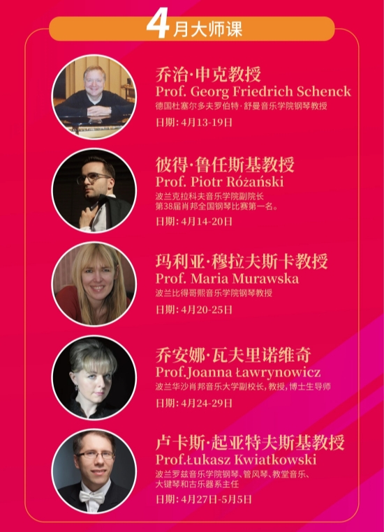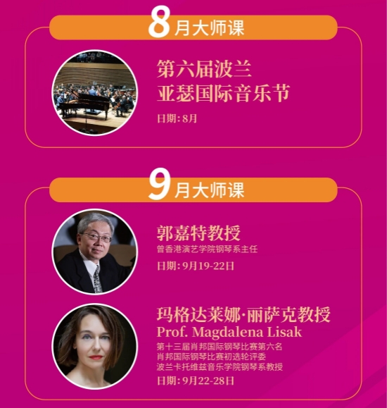 格里格国际钢琴比赛、克利夫兰国际钢琴比赛、艾特林根国际钢琴比赛等顶级赛事评委亲授;