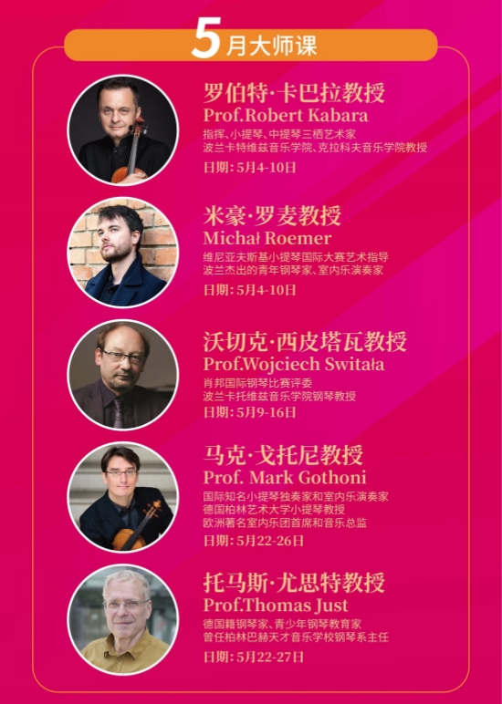 2026年,我们将邀请30位国际知名教授亲临中国授课,线下课程涵盖钢琴、小提琴两大核心品类,让你不出国门,就能沉浸式感受顶级教学的魅力。