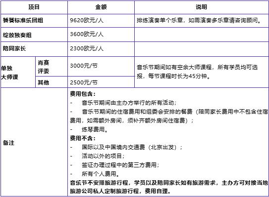 4.音乐节期间大师课曲目可由学员任选并提供谱子上课。